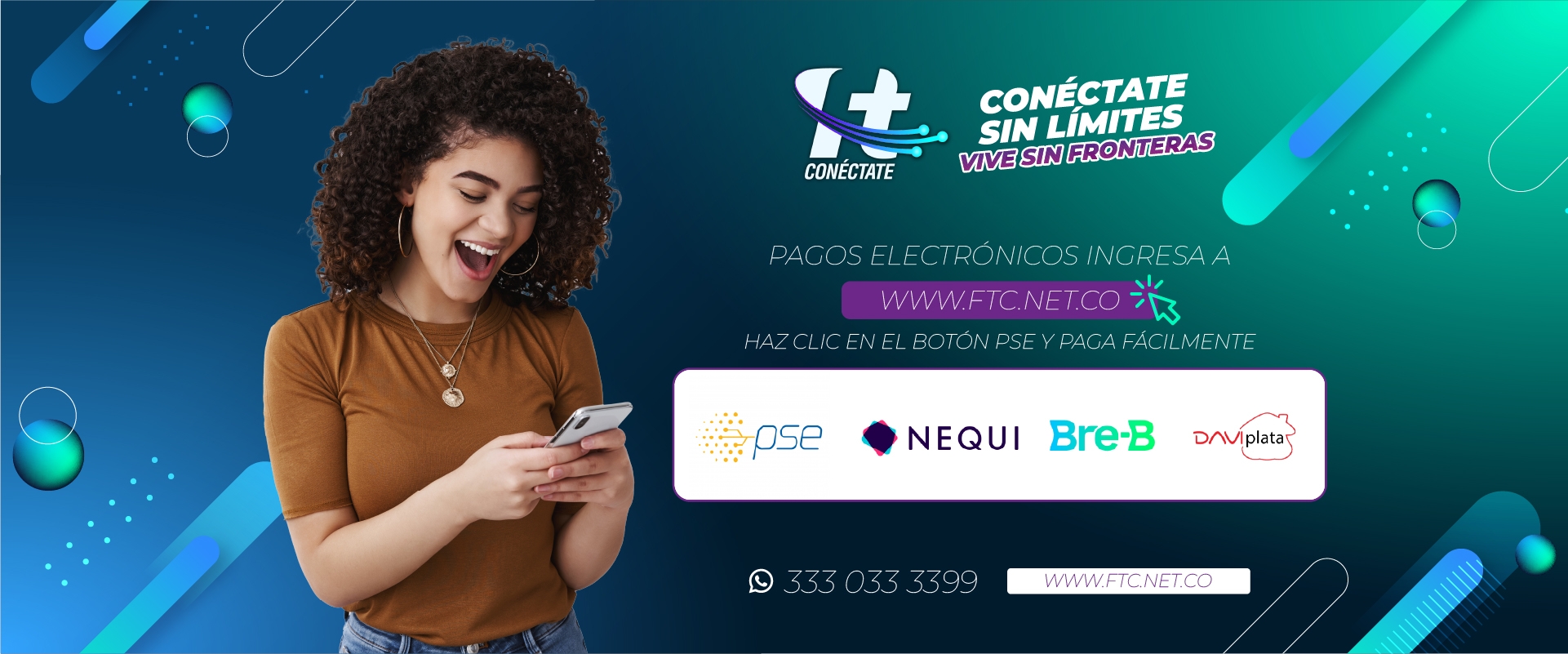 CONÉCTATE es una empresa 100% colombiana especializada en servicios de telecomunicaciones para hogares y empresas en Bogotá e Ibagué.